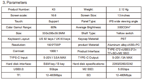 K3 comes with an 82-key mechanical keyboard, with hot-swappable process