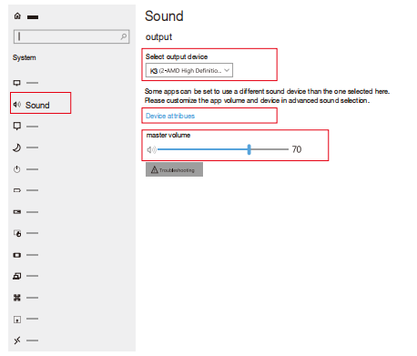 1.3 Left click "turn on sound settings" and pop-up the box as provided,Here users can set about sound;