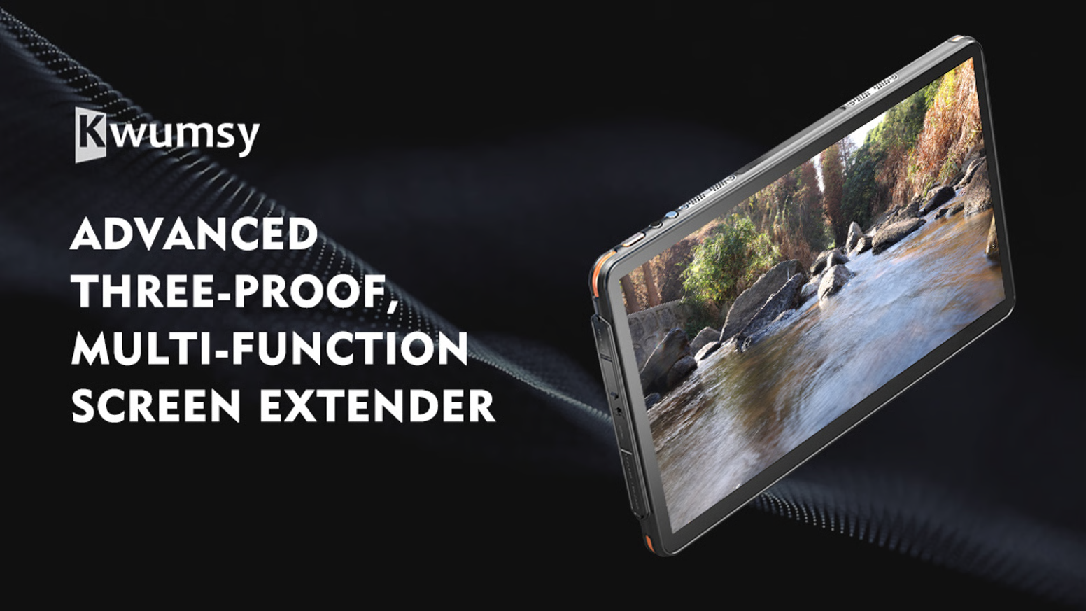 Este é o Kwumsy N1, a primeira tela externa multi-cenário e multi-aplicação com três provas do mundo, combinando recursos de ponta, como tela única, proteção com três provas, interface de toque de dez pontos, digital recursos de porta-retratos e uma fonte de alimentação móvel integrada.